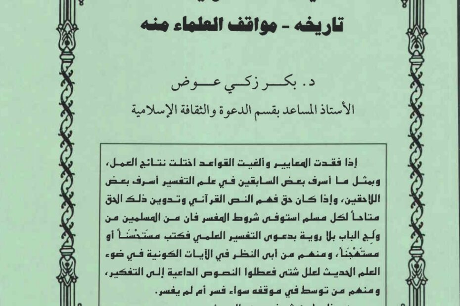 Buku ini membahas tentang tafsir ilmiah terhadap ayat-ayat kauniyah (kosmologis) dalam Al-Qur’an, sejarahnya, serta pandangan para ulama mengenai pendekatan tersebut. Menjelaskan definisi ayat-ayat kauniyah dalam Al-Qur’an, yaitu ayat-ayat yang berkaitan dengan fenomena alam, kosmos, penciptaan,… Tafsir Ilmiah terhadap ayat-ayat kauniyah (kosmologis)